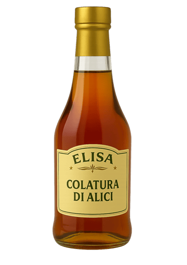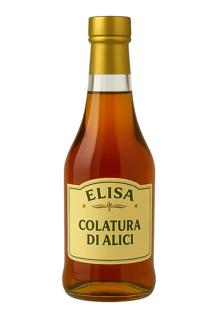La colatura di alici è un condimento molto pregiato, ottenuto dalla maturazione e lavorazione delle acciughe secondo l’antica tradizione italiana. Dal sapore intenso, sapido e aromatico, esalta il gusto di pasta, verdure, carni e piatti a base di pesce, aggiungendo un tocco di autenticità e raffinatezza mediterranea a ogni preparazione.