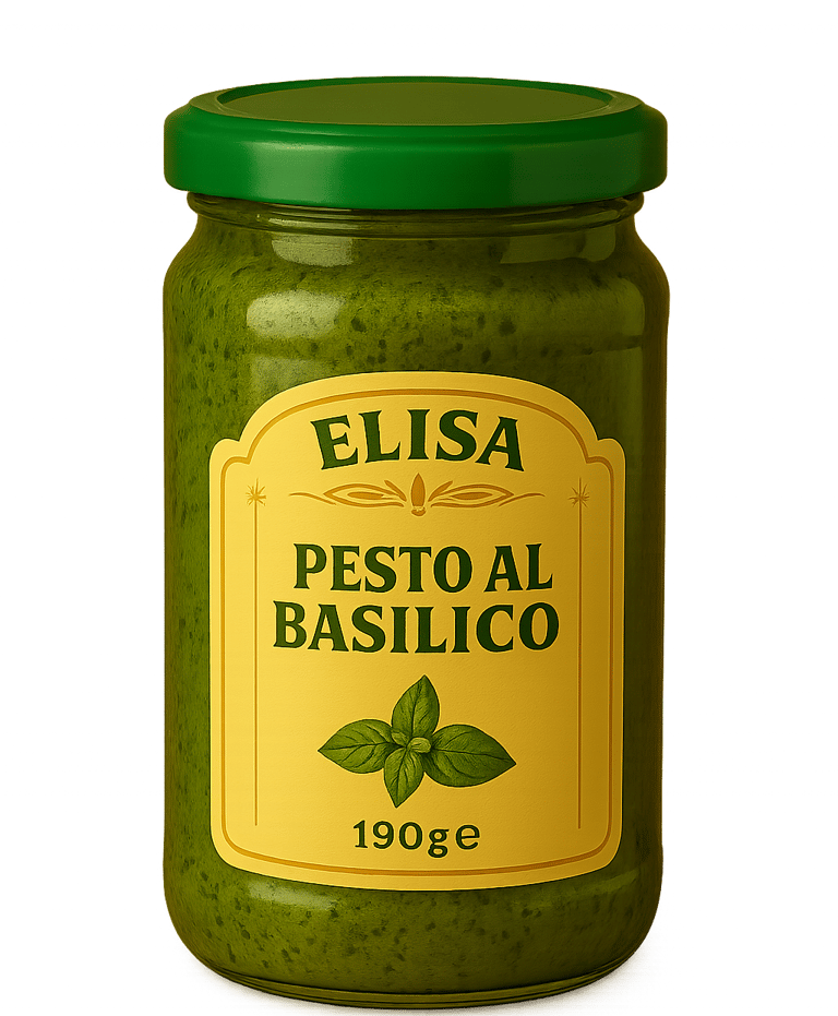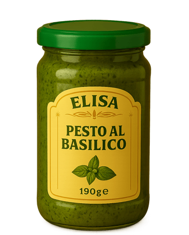 A fresh and aromatic pesto, made with fresh basil (40%) that releases the full fragrance of Ligurian tradition. Creaminess comes from a selection of mixed cheeses (including Grana Padano and Parmigiano Reggiano) and potato flakes, while cashews and pine nuts add a pleasant crunchy and flavorful note. Sunflower oil and a touch of extra virgin olive oil complete the velvety texture, accompanied by garlic, sugar, salt, and yeast extract for a perfectly balanced taste. Acidity regulator (lactic acid) and antioxidant (L-ascorbic acid) preserve freshness, making it an ideal condiment for pasta, bruschetta, and creative dishes.