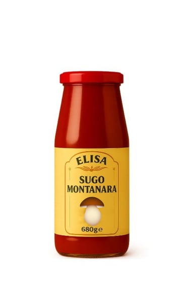 A sauce with an intense and rustic flavor, made with tomato pulp (77%) and enriched with tomato concentrate for a full and rich taste. The combination of button mushrooms (6%) and oyster mushrooms (2%) gives the sauce an earthy and enveloping note, while olive oil, white wine, and garlic enhance its aromatic profile. Fresh touches of basil, parsley, and aromatic herbs, along with a delicate balance of sugar and natural flavors, complete this condiment, making it perfect for those who love the genuine and robust flavors of mountain cuisine.