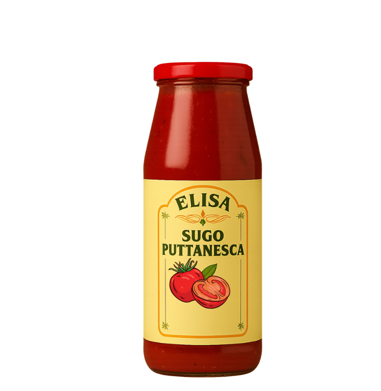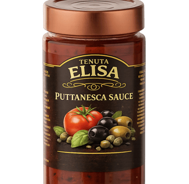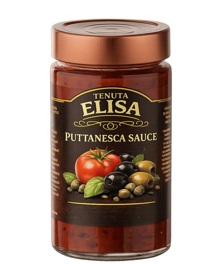 A sauce with a bold Mediterranean character, made with tomato pulp (79%) and enriched with a rich tomato concentrate. The recipe is enhanced by black olives (5%), capers (0.8%), and a touch of anchovies (0.5%), bringing authentic depth and savory flavor. Everything is balanced with olive oil, onion, and a splash of white wine, then delicately seasoned with garlic, a hint of sugar, and a bouquet of aromatic herbs: parsley, basil, and oregano. A touch of chili pepper completes the sauce, adding a spicy note that makes it truly distinctive. Perfect for anyone who loves pasta with rich flavor and tradition..