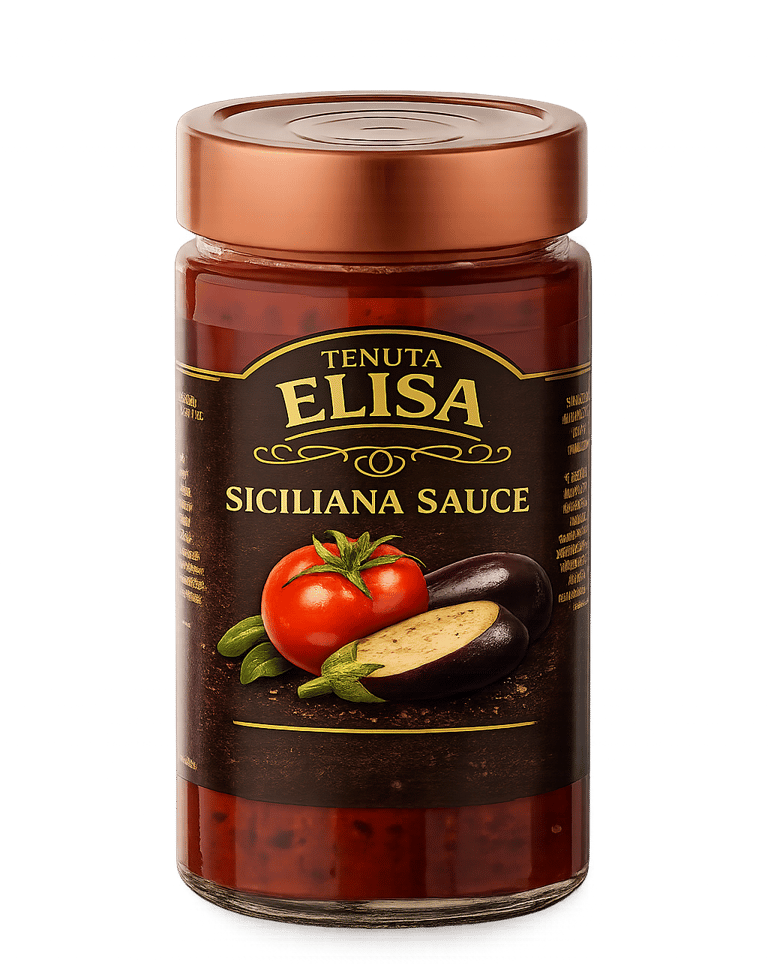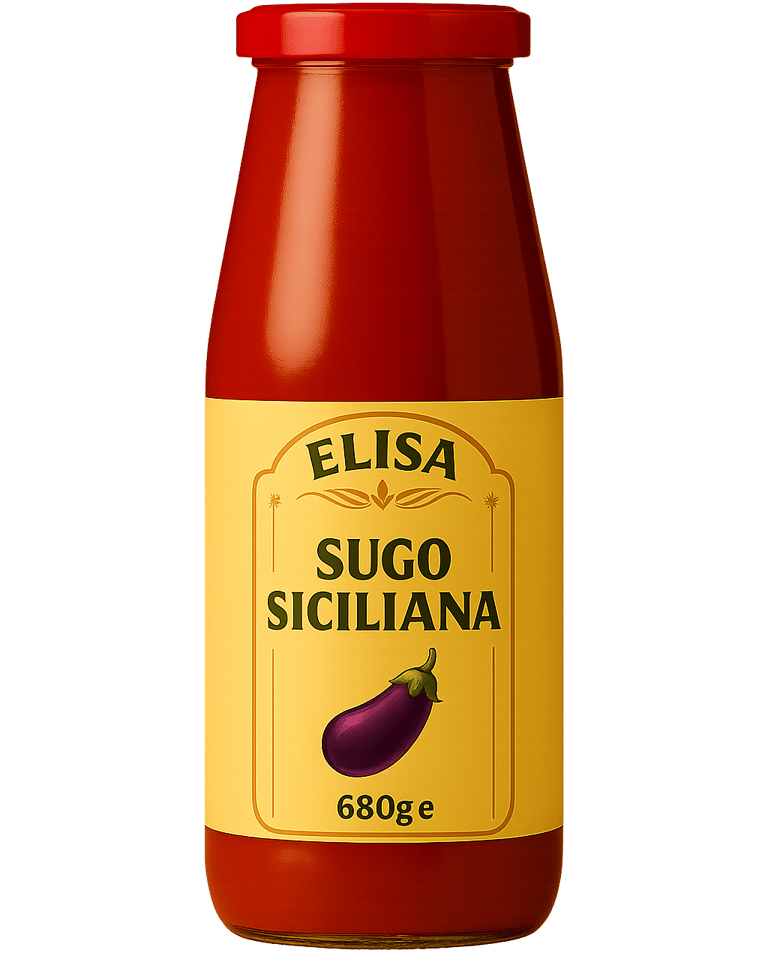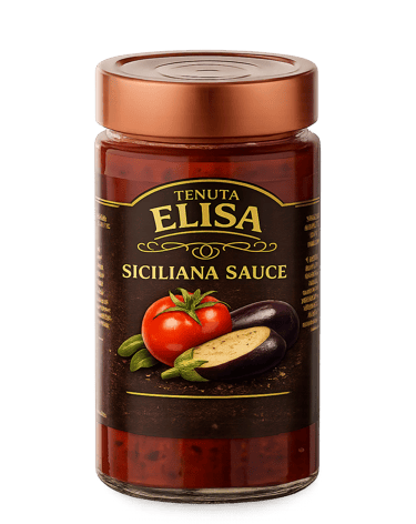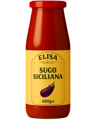 A rich and aromatic sauce, made with tomato pulp (76%) and enhanced with tomato concentrate for an intense flavor. Eggplants (8%) and onion (3%) add natural sweetness and softness, while olive oil, garlic, parsley, and oregano complete the aromatic profile typical of Sicilian tradition. A light touch of sugar and natural flavors balances the taste, making this sauce perfect for those who love pasta dishes with a genuine Mediterranean flavor.