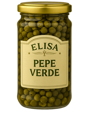 Il pepe verde in salamoia è caratterizzato da bacche tenere e aromatiche, raccolte al giusto grado di maturazione e conservate in salamoia per preservarne il profumo e il sapore fresco e leggermente piccante. Ideale per insaporire carni, pesce, salse e piatti creativi, dona un tocco speziato, aromatico e raffinato a ogni preparazione
