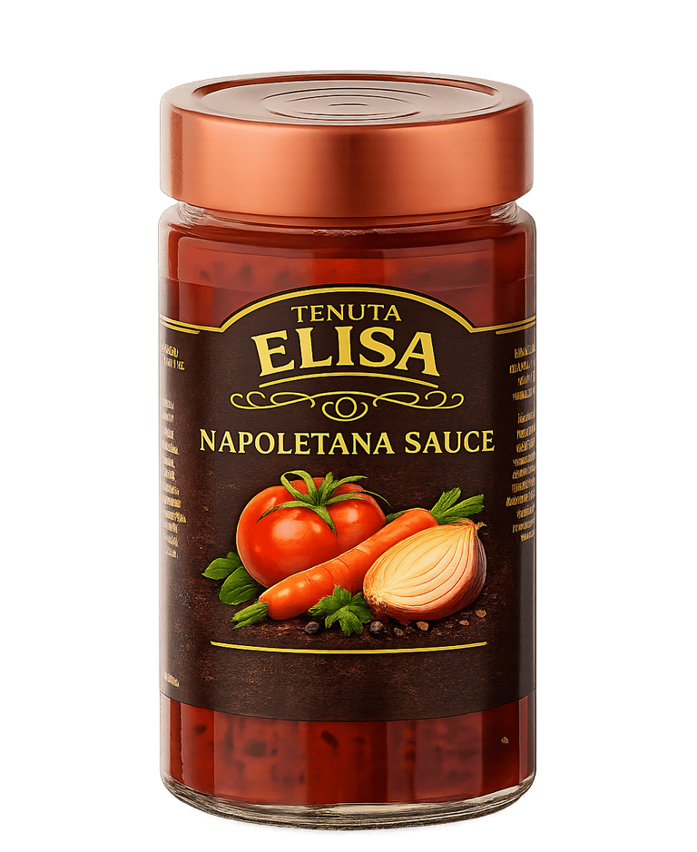 Un sugo classico della tradizione napoletana, preparato con polpa di pomodoro (83,4%) e doppio concentrato di pomodoro (8%) per un gusto ricco e avvolgente. La delicatezza di cipolla, sedano (0,4%) e carote (0,4%), unita al profumo fresco di basilico (0,1%) e all’aroma intenso dell’aglio, rende questo condimento equilibrato e fragrante. Un filo di olio extra vergine di oliva, con un tocco di zucchero e sale, completa il sapore, dando vita a un sugo perfetto per chi desidera portare in tavola la genuinità e la tradizione della cucina napoletana.