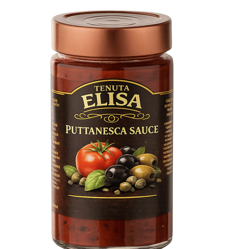 Un sugo dal carattere deciso e mediterraneo, preparato con polpa di pomodoro (79%) e arricchito da un intenso concentrato di pomodoro. La ricetta è impreziosita da olive nere (5%), capperi (0,8%) e un tocco di acciughe (0,5%), che donano profondità e sapidità autentica. Il tutto è armonizzato da olio di oliva, cipolla, vino bianco e profumato con aglio, un leggero equilibrio di zucchero, e un bouquet di erbe aromatiche: prezzemolo, basilico e origano. Una punta di peperoncino completa il condimento, regalando una nota piccante che rende questo sugo inconfondibile. Perfetto per chi cerca un piatto di pasta ricco di gusto e tradizione.