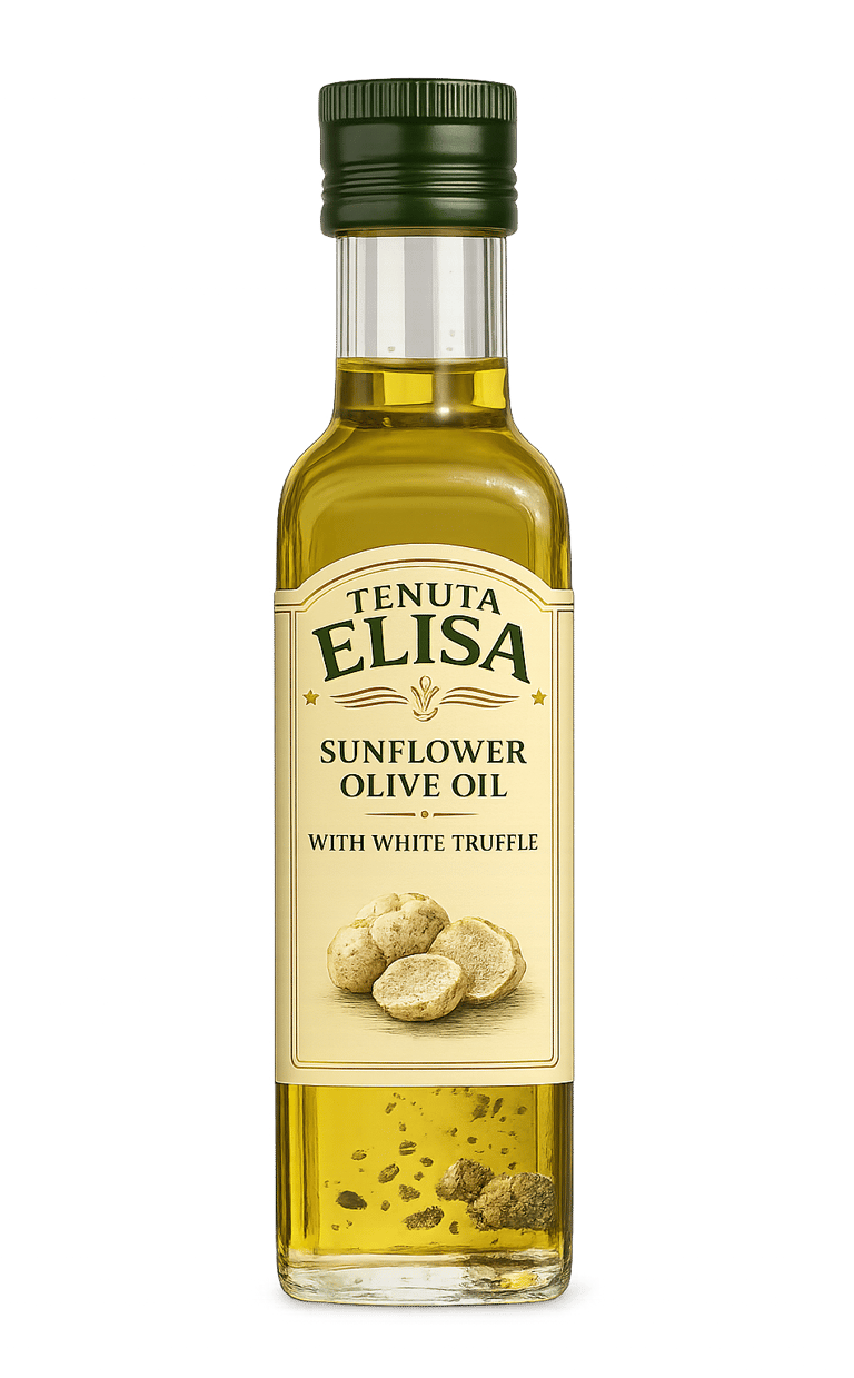 Un olio di semi di girasole dal gusto delicato, impreziosito dal raffinato aroma del tartufo bianco. Ideale per esaltare il sapore di primi piatti, insalate, carni e verdure, dona un tocco elegante e gourmet a ogni preparazione. Perfetto per chi ama sperimentare in cucina e aggiungere il fascino unico del tartufo bianco ai propri piatti.